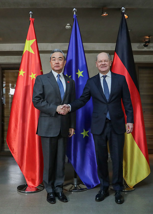 王毅首先轉達了中國領導人對朔爾茨的親切問候,表示中德高層互動頻繁,務實合作保持良好勢頭,取得積極成果,符合兩國人民根本和長遠利益。當前單邊主義、保護主義抬頭,但世界走向多極化勢不可擋。作為戰略伙伴,中德、中歐更應加強團結、協調與合作,堅持自由貿易,踐行多邊主義,維護聯合國權威。德國是具有全球影響的歐洲大國,中方樂見德國在多極格局中發揮重要作用,願同德方深化全方位合作,推動雙邊關係向前向好發展,維護全球和平穩定,為動盪不安的世界提供更多確定性。