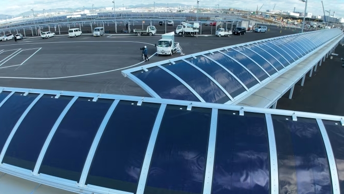 日本大阪,安裝在一處公交車站上的鈣鈦礦太陽能電池板 《金融時報》配圖