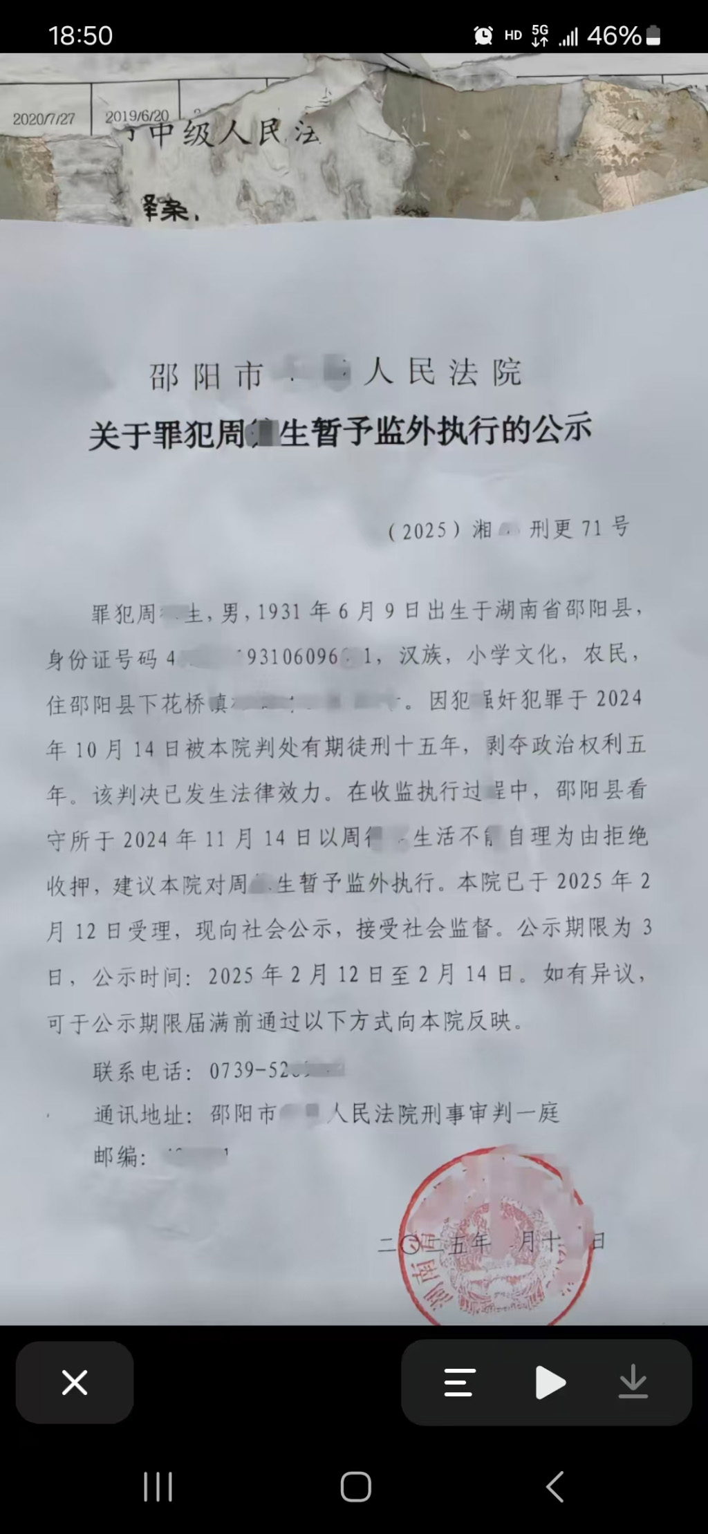 93歲男子強姦未成年人被判15年,獲監外執行?多方回應