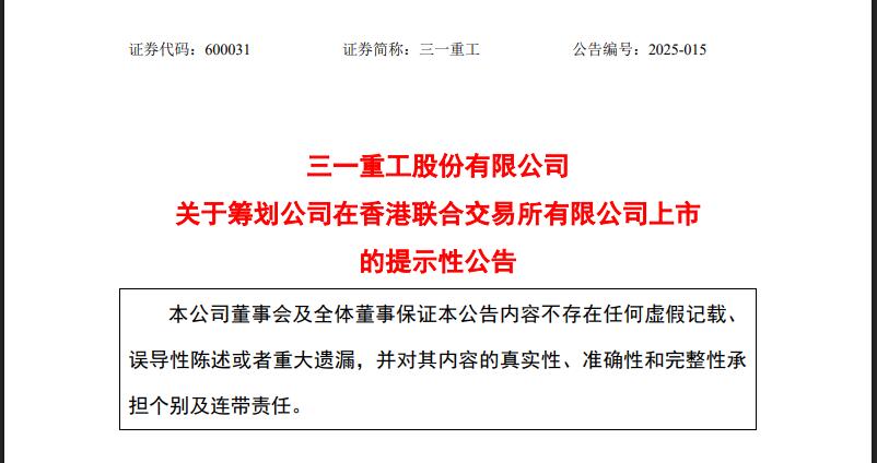 2月18日,三一重工股份有限公司(三一重工)發佈公告稱,為深入推進全球化戰略,加強與境外資本市場對接,進一步提升公司治理透明度和規範化水平,公司目前正在籌劃境外發行股份(H股)並在香港聯合交易所有限公司上市事項。