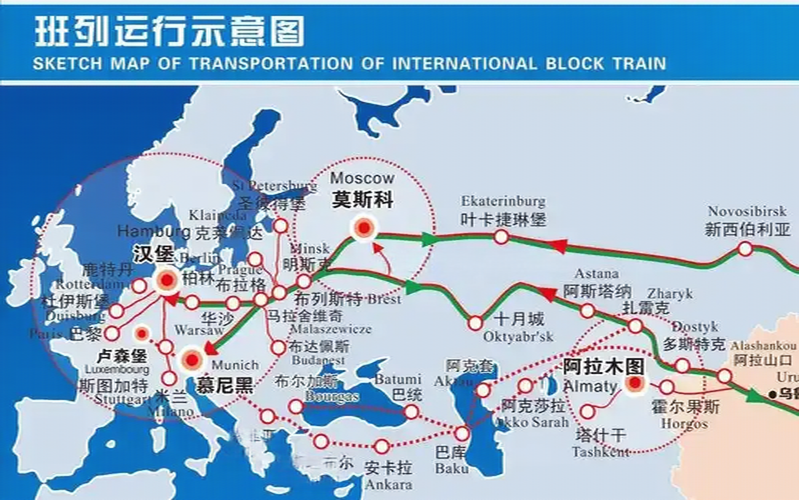 中歐班列,是連接中國和歐洲的鐵路線路。在俄烏衝突爆發前,中歐班列的線路一般是從中國的蘇州、武漢、鄭州、成都、重慶、深圳等地出發,經過滿洲里、二連浩特、霍爾果斯、阿拉山口等口岸出境,途經哈薩克斯坦、俄羅斯、白俄羅斯到達波蘭的羅茲和華沙、德國的紐倫堡和杜伊斯堡,以及西班牙的馬德里等地。