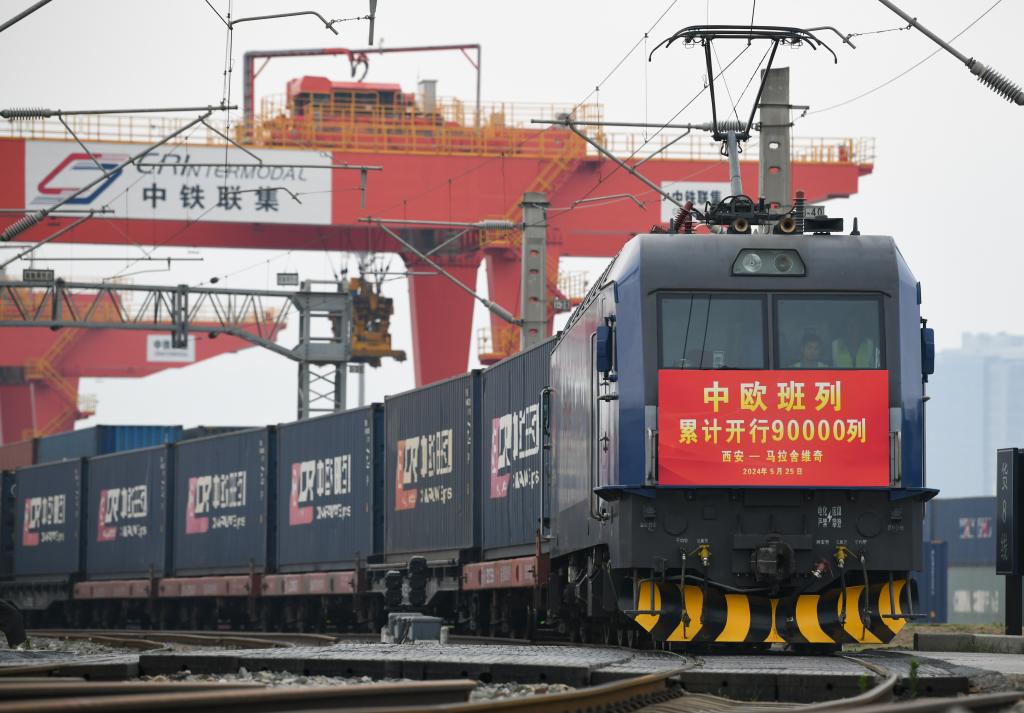 X8157次中歐班列(西安—馬拉舍維奇)從西安國際港站開出。 資料圖:新華社