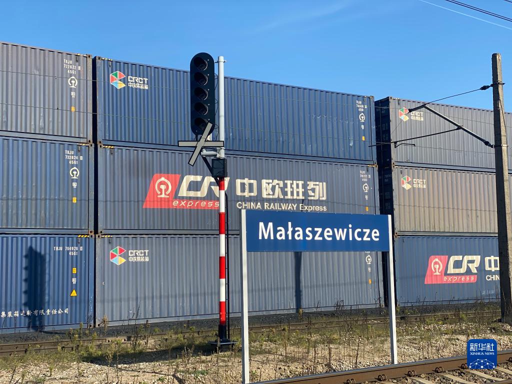 在波蘭東部馬拉舍維奇拍攝的中歐班列集裝箱 資料圖:新華社