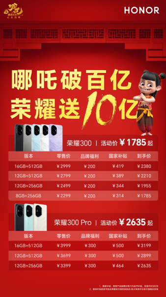 《哪吒2》票房破百億之際,恰逢國家“ICT領域國補”政策加碼,榮耀抓住時機推出“哪吒破百億,榮耀送10億”活動,通過“國補+廠補”雙重優惠,將購機補貼最高提升至800元。此外,榮耀聯合萬達影院推出“購機贈票”等四重福利,進一步將手機用户引流至影院,形成“觀影—購機—再觀影”的消費閉環。數據顯示,活動期間榮耀線下門店日均銷量激增4倍,推動手機市場在春節期間實現兩位數增長。