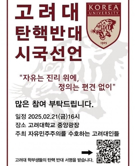 釜山大學、崇實大學、高麗大學的“彈劾反對時局宣言”集會通知