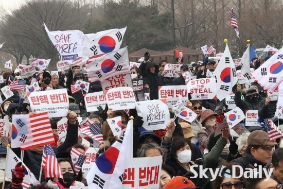 2月以來,韓國多地的保守黨集會遊行高潮迭起,反對彈劾,反對在野黨,名為保護韓國的民主,其口號和宗旨卻變味得厲害。到了目前這個階段,仍然反對彈劾的人,更多的不是在反對彈劾或者支持尹錫悦個人,而是在為了一個想象中的意識形態共同體而高聲吶喊。