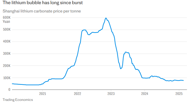 烏克蘭可能擁有歐洲最大的鋰礦盆地,但自2022年鋰價泡沫破裂以來,鋰價已暴跌88%,且世界各地不斷有新的鋰礦被發現,美國內華達州的麥克德米特火山口被認為是地球上最大的鋰礦牀,儲量達4000萬公噸,足以讓美國在鋰資源上超越中國。
