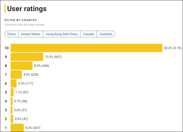 IMDb網站觀眾評分分佈