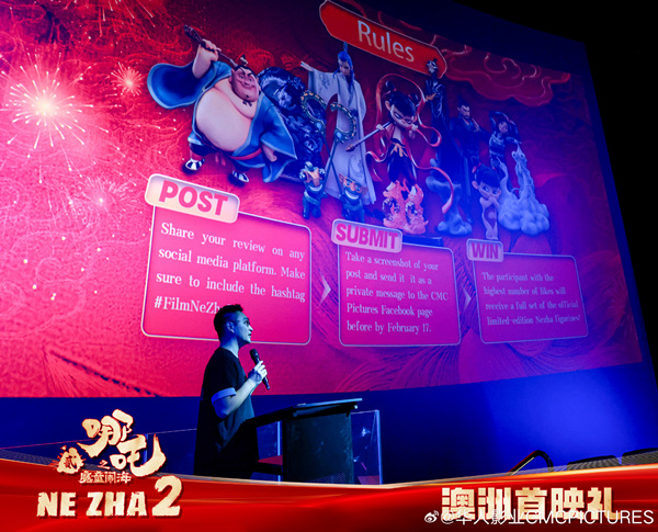 《哪吒2》澳大利亞首映禮上推出的發帖帶#FilmNeZha2 贏電影周邊的活動 @華人影業CMCPICTURES
