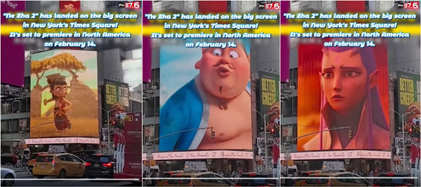 《哪吒2》登上紐約時報廣場屏幕