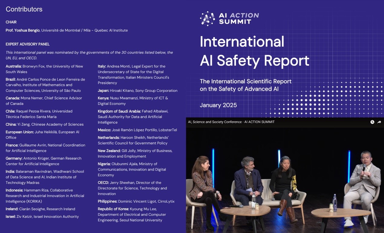 嚴格意義上雖然不能算是法國人工智能行動峯會的主要成果,但是“國際人工智能安全報告(International Report on AI Safety)”藉助人工智能行動峯會科學日,確實贏得了更多關注。