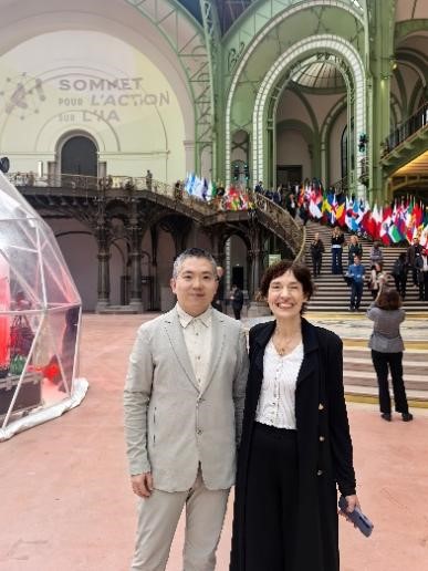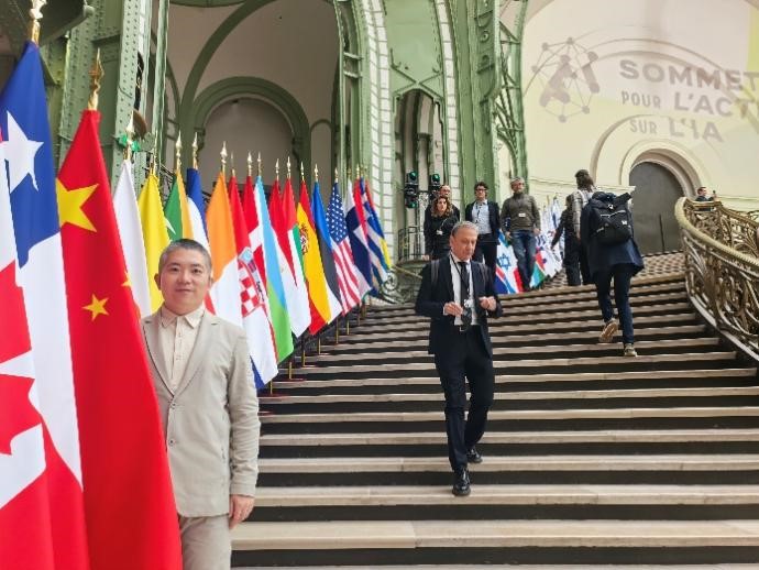 人工智能行動峯會主會日,與法國總統人工智能行動峯會特使Anne女士合影,她2024年底訪問北京並邀請中國政產學研各方代表參加行動峯會。