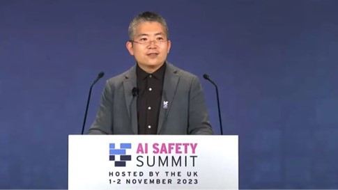 2023年在布萊切利人工智能安全峯會(AI Safety Summit)公開會議主會環節發言,筆者建議成立面向國家間合作的國際人工智能安全網絡