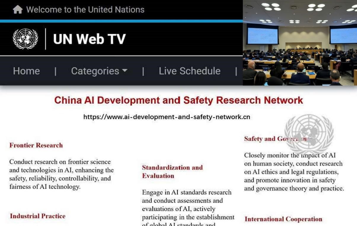 “中國人工智能發展與安全研究網絡”在2024年9月聯合國大會期間,由中國、贊比亞主辦人工智能能力建設國際合作高級別會議上宣介