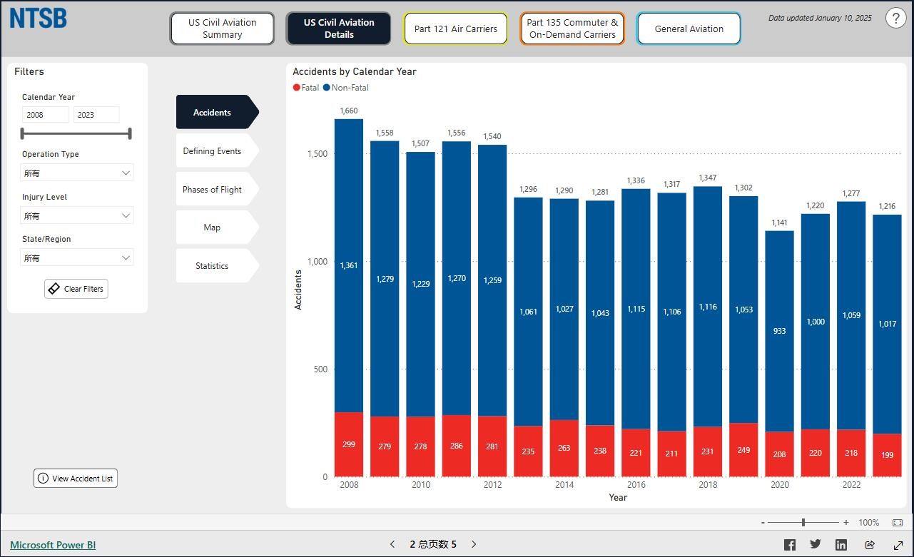 所以現在回到“為什麼美國最近發生那麼多空難事故?”這個問題,答案很簡單:美國就是有大量通航事故,就如我們熟悉的道路上每天都有大量交通事故。而且如果我們以NTSB的官方統計數據來看,過去十年中通航規模不斷變大而每年事故數量不斷下降,安全形勢是在不斷改善的。