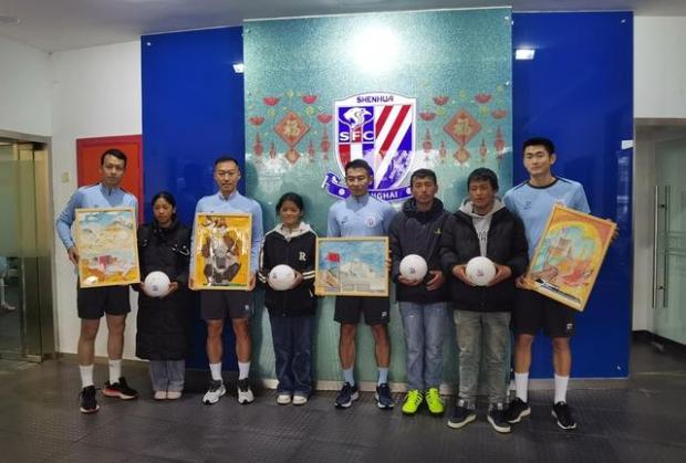 隨後,上海申花的吳曦、于漢超、高天意和陳晉一等球員與四位藏族小朋友互動交流並互贈禮物,其中申花球員們為他們準備了簽名足球,藏族小朋友則將具有藏族特色的繪畫送給了球員。