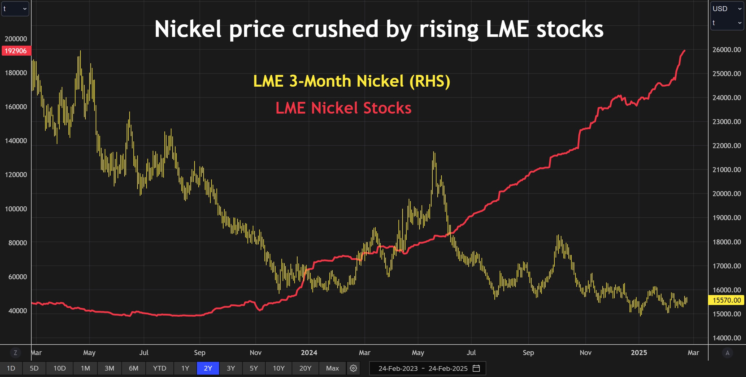 文章稱,印尼鎳產量激增,導致全球鎳價格暴跌,倫敦金屬交易所鎳價已暴跌至每噸1.6萬美元以下。