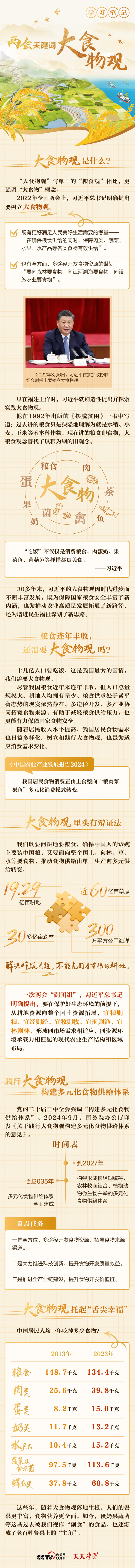 在這些年的全國兩會上,圍繞踐行大食物觀的討論常常成為熱點。習近平總書記也在與代表委員共商國是時分享自己的最新思考,為各地準確把握並深入踐行大食物觀提供了根本遵循。