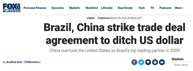 中國與巴西達成協定,不再使用美元作為中間貨幣福克斯財經