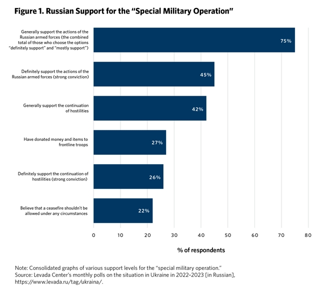 放大反戰聲量。西方媒體與烏克蘭情報機構引用俄羅斯國內民調數據,宣稱“反戰是主流民意”。2023年12月的一項民調顯示,74%的俄羅斯民眾希望立即停戰,這一數據被廣泛解讀為“普京政權失去民心”。同時,西方通過傳播俄軍傷亡數據(如英國軍方聲稱俄軍傷亡超30萬)和戰爭代價的敍述,刺激民眾對戰爭持久化的不滿。
