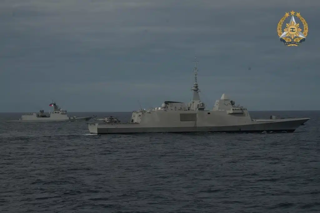 與菲律賓“何塞·黎剎”號(遠處)共同編隊航行中的法國海軍“阿爾薩斯”號護衞艦(近處)