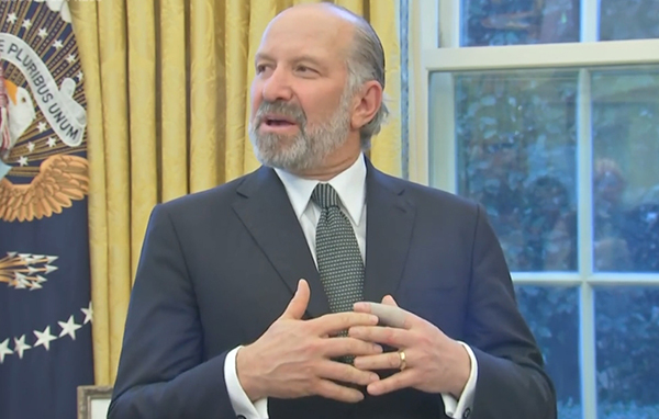 美國商務部長霍華德·盧特尼克開玩笑地接話説,“他們不像以前那樣富有了”。特朗普笑着反駁説,“我認為他們還是可以負擔得起500萬美元的”。