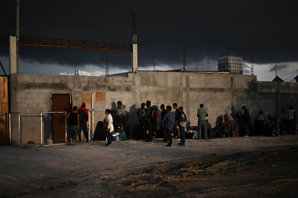 2023年5月16日,移民在墨西哥雷諾薩的一處收容所外等待進入。 新華社記者辛悦衞攝