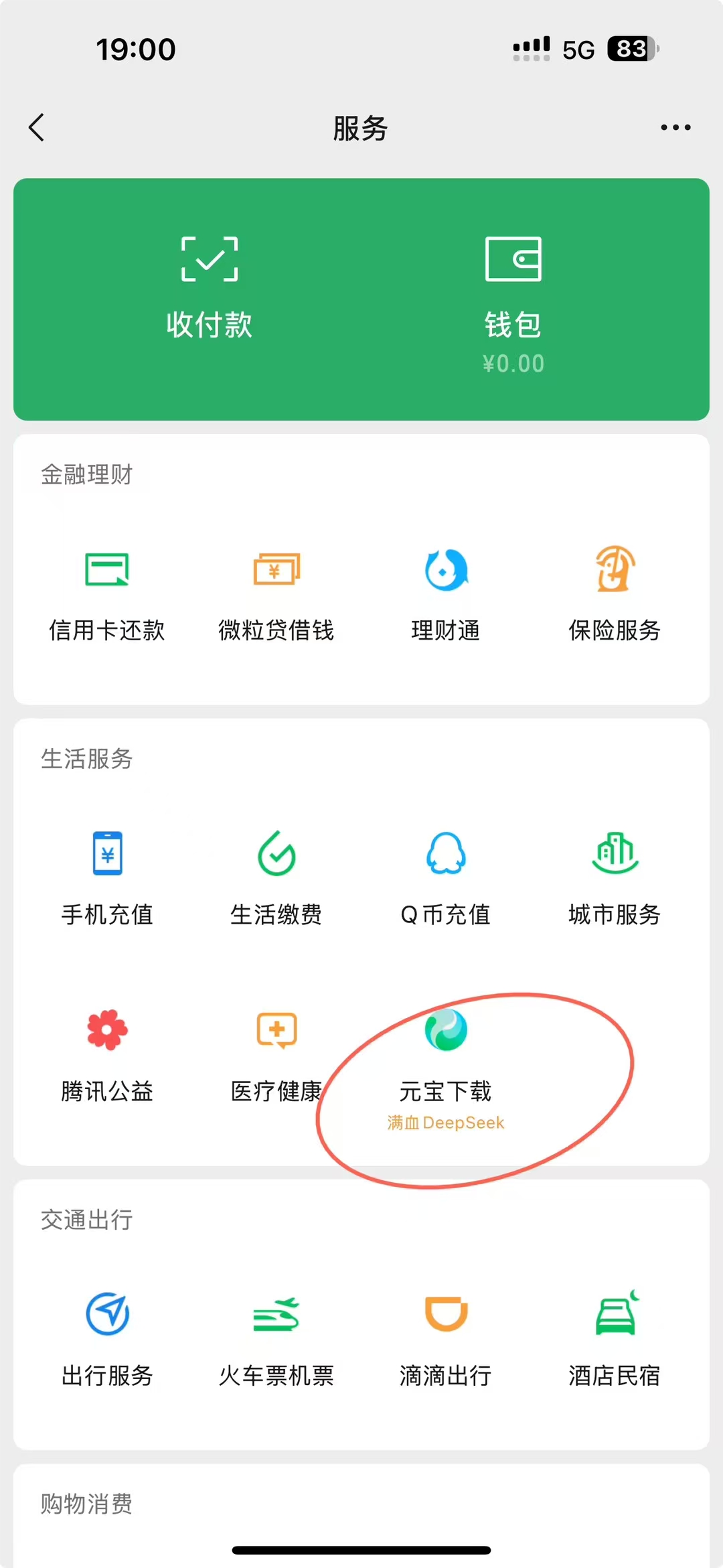 微信AI最新動作!生活服務頁面限時提供元寶下載