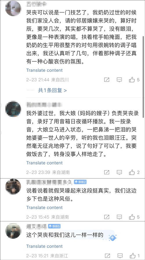 有網友評論,雖然不在河南農村長大,“但這個哭喪片段竟與我童年記憶完美重合”。