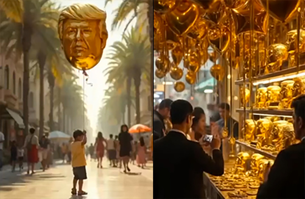 當地時間26日,特朗普在其自創的社交媒體平台“真相社交”上發佈了一段33秒的AI(人工智能)視頻,描繪了未來的加沙——從飽受戰火摧殘的地區變成了一個充滿特朗普金色雕像的海濱度假勝地。