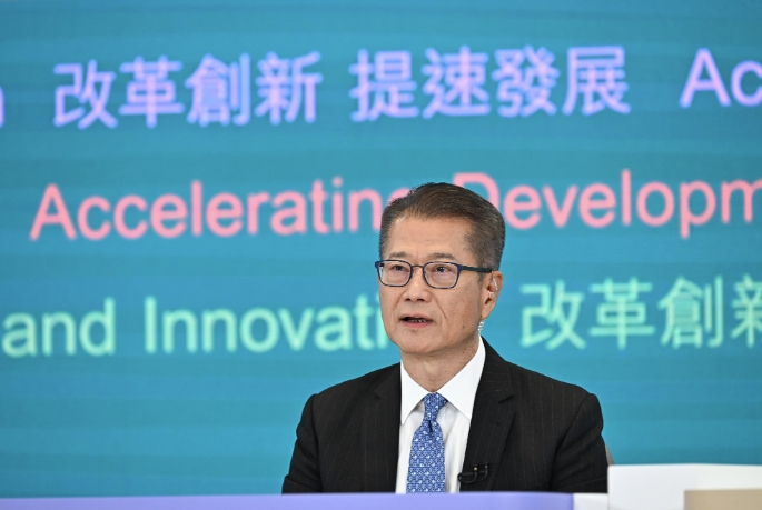陳茂波出席《財政預算案》論壇並進行開場發言。香港特區政府公報