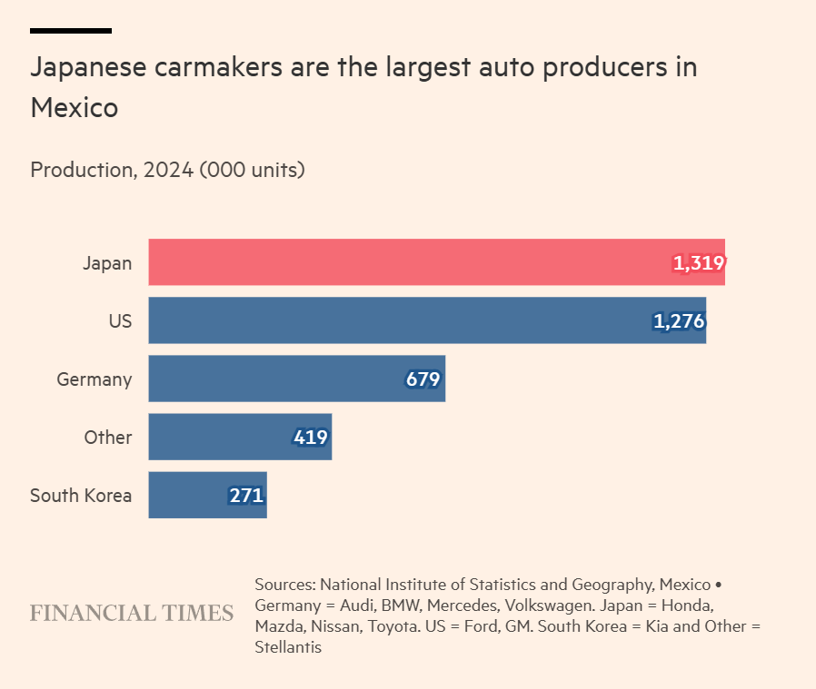 英國《金融時報》就在近期評價這一關税時表示,特朗普的關税威脅,將令日本汽車業在墨西哥的180億美元(約1308.1億元人民幣)投資風險急劇上升。