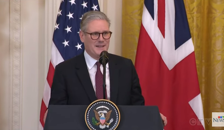 當地時間2月27日,英國首相斯塔默在和特朗普的聯合記者會上回答提問。 CTV視頻截圖