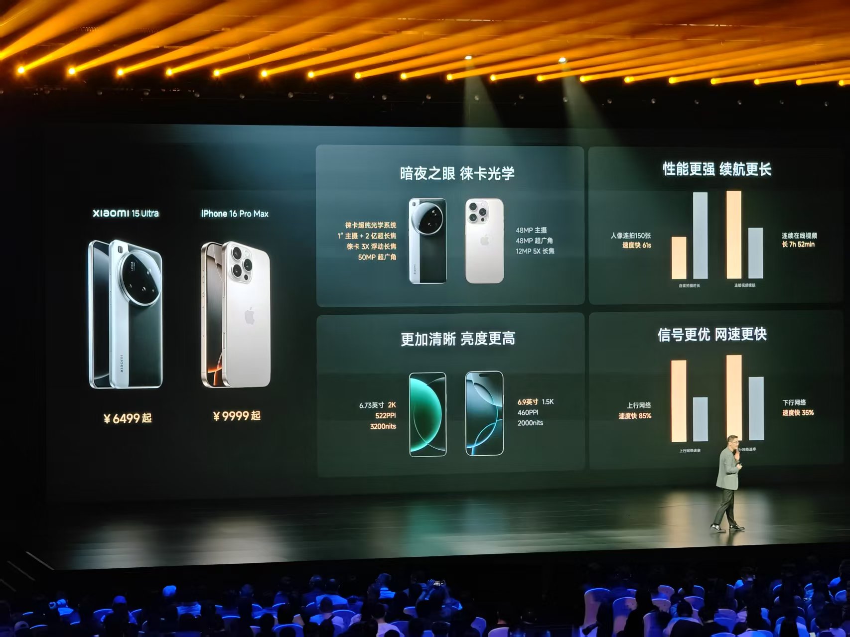 小米將其中徠卡1英寸超大底主攝和徠卡2億超級長焦稱為移動影像的“一皇一後”。盧偉冰稱,小米15 Ultra可以實現28倍無損變焦,此前行業最高倍數是22倍,四攝八焦段實現了無斷檔接力。同時,小米15 Ultra的“夜神”代號突出了其夜景能力,小米稱其長焦綜合進光量達到iPhone16 Pro Max的4倍。