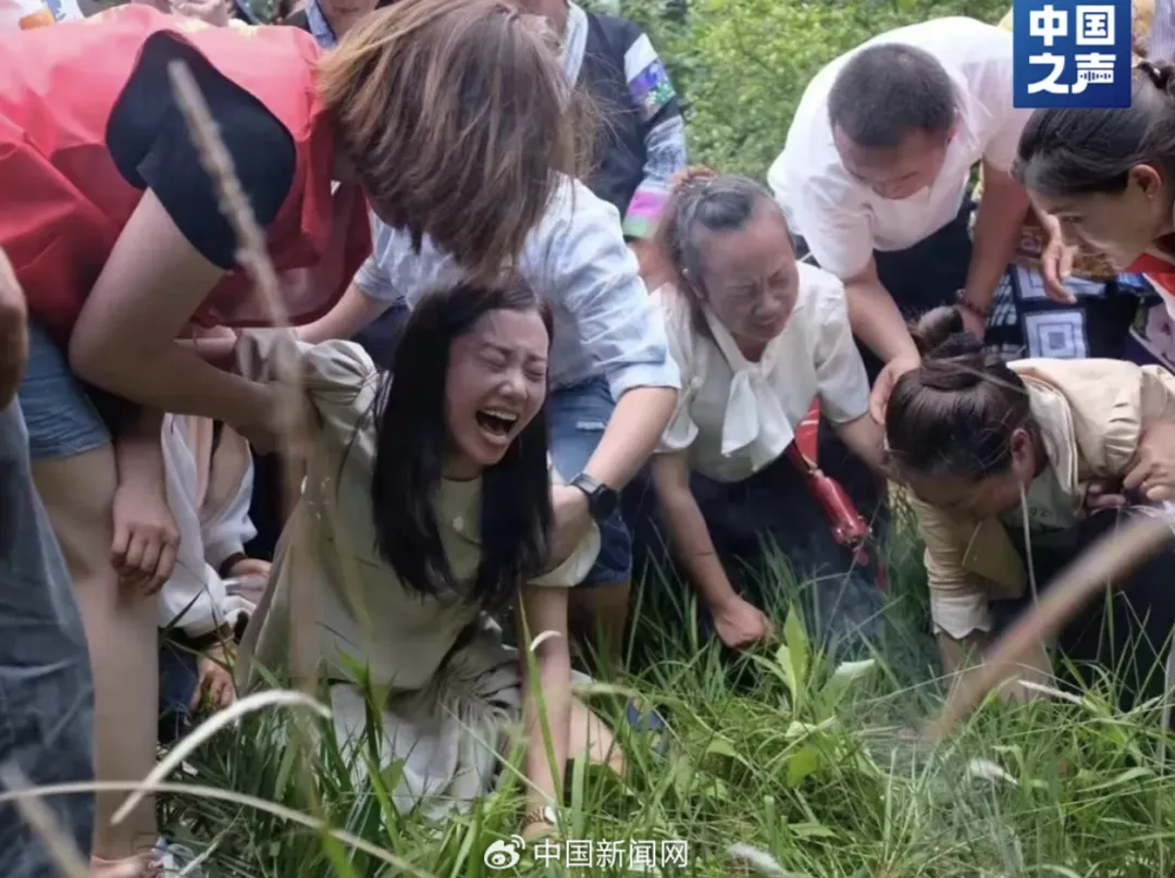 楊妞花在直播中得知餘華英被執行死刑時,激動落淚。