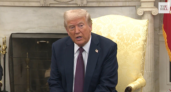 當地時間2月27日,特朗普回答記者提問。《國會山報》報道視頻截圖