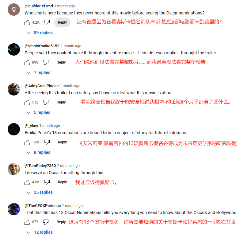惡評如潮的《艾米莉亞·佩雷斯》預告片評論區
