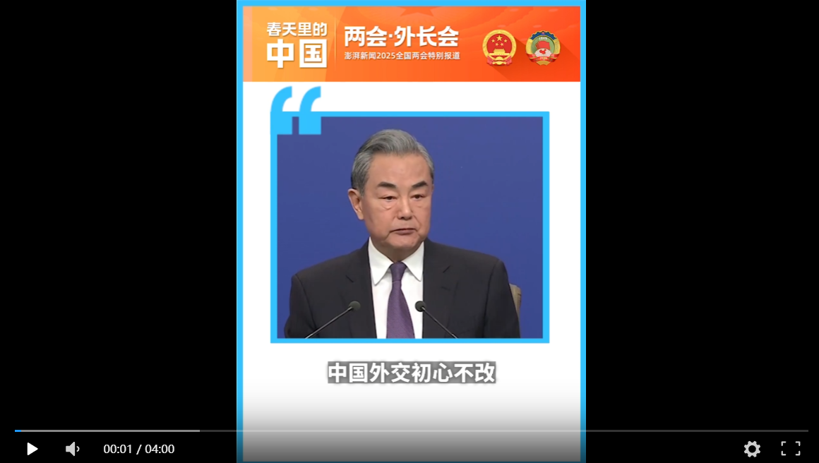 兩會外長會丨4分鐘回顧王毅超燃講話:中國穩住不確定的世界 guancha 2025-03-07 點擊查看原視頻 3月7日,十四屆全國人大三次會議舉行外長記者會。中共中央政治局委員、外交部長王毅在87分鐘內回應23個國際熱點問題,4分鐘回顧外長會金句。