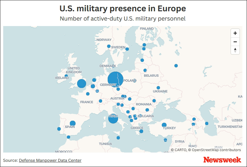 現役駐歐美軍人員分佈圖 《新聞週刊》網站製圖