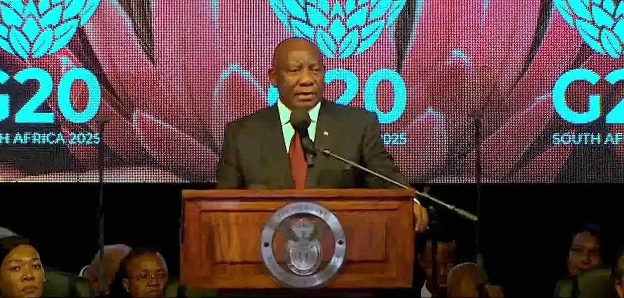 二十國集團(G20)外長會議在南非約翰內斯堡國家展覽中心開幕,南非總統拉馬福薩致辭央視新聞客户端