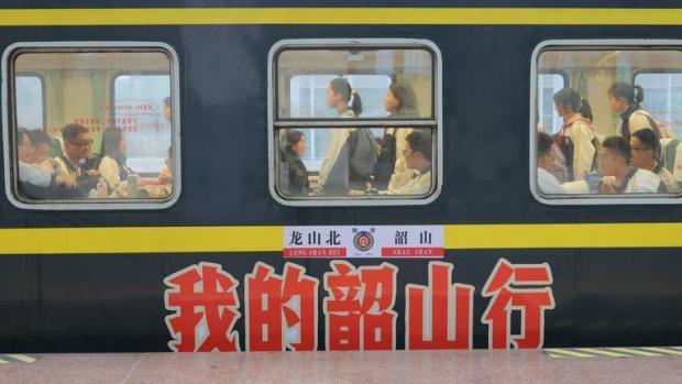 △湖南龍山縣青年學子乘坐紅色研學專列。