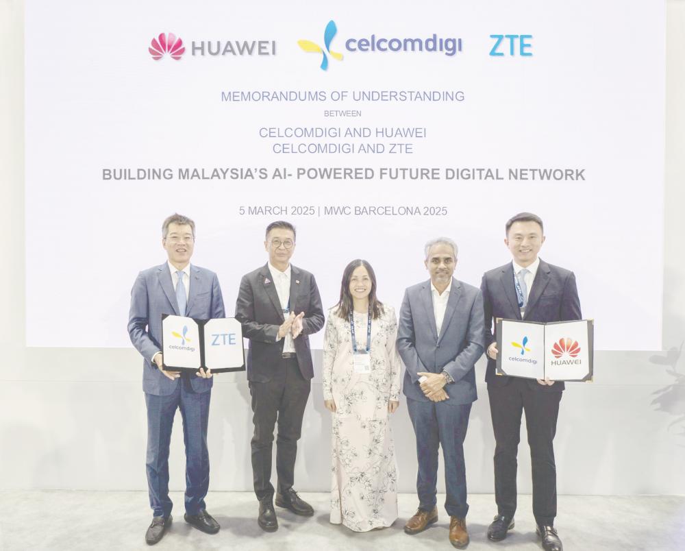 該諒解備忘錄於上週在西班牙巴塞羅那舉行的世界移動通信大會(MWC 2025)上,由CelcomDigi副首席運營官Albern Murty、華為(馬來西亞)首席執行官Simon Sun和中興(馬來西亞)董事總經理Steven Ge簽署,並在馬來西亞通信部副部長張念羣的見證下進行。