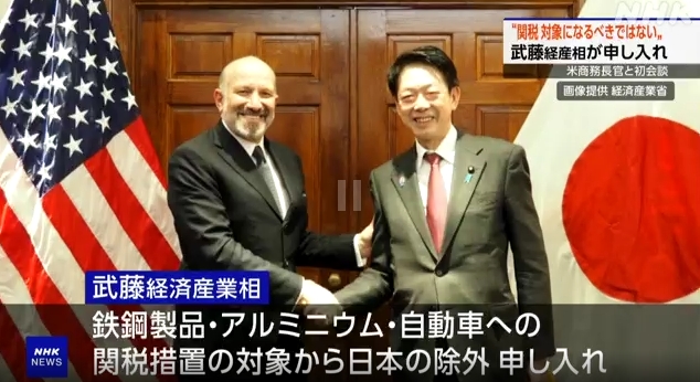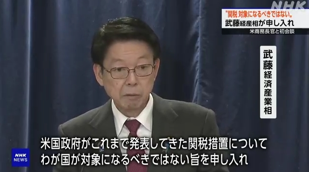 武藤容治稱,早些時候在與美國商務部部長盧特尼克、美貿易代表格里爾、白宮經濟顧問凱文·哈塞特等人舉行的首次會談中,他向美方闡明,日本不應該受到美國關税計劃的影響。他説,“我們解釋了日本的立場,即(關税)對日本產業的影響,以及對日美兩國商業環境的發展和擴大投資與就業的影響。”