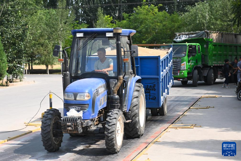 在寧夏銀川市永寧縣一處糧食收購點,農民把裝載小麥的農用車停在地磅上稱重。 圖源:新華社