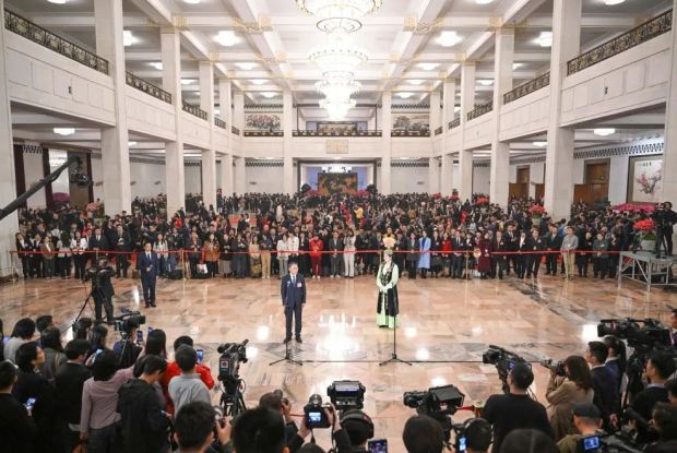 3月11日,第十四屆全國人民代表大會第三次會議第三場“代表通道”集中採訪活動在北京人民大會堂舉行。這是接受採訪的全國人大代表入場。新華社記者 胥冰潔 攝