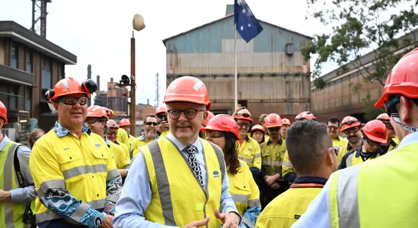 2025年2月14日,阿爾巴尼斯訪問澳大利亞第一大鋼廠所在地伍倫貢。 澳聯社(AAP)