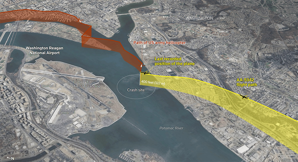 華盛頓撞機事故發生過程示意圖 路透社