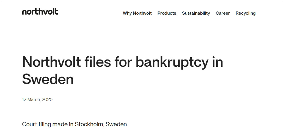 3月12日,Northvolt在官網上發佈的申請破產聲明