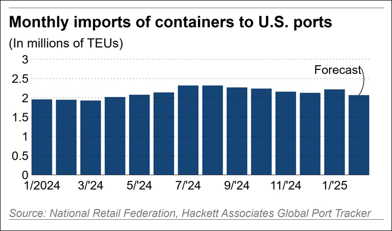 為規避關税帶來的額外成本,美國進口商正搶先囤貨,導致開年美國港口貨運量激增。
