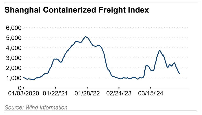 根據在線貨運預訂平台Freightos的數據,去年11月特朗普贏得大選後,空運價格飆升,隨後回落,並在2月份小幅反彈。海運方面,追蹤全球最繁忙的集裝箱港口——上海集裝箱即期運價的上海出口集裝箱結算運價指數(SCFI)在去年10月至今年1月間上漲21%,隨後在截至3月7日的日子裏暴跌43%。